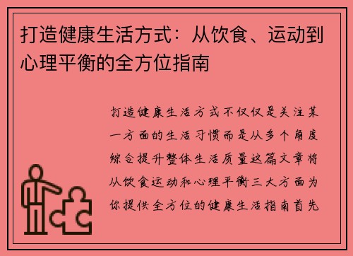 打造健康生活方式:从饮食、运动到心理平衡的全方位指南